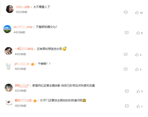 网传视频显示,粉丝直接打开女厕所的门,追了进去,举起手机一顿狂拍,随后众多粉丝蜂拥而至,都挤进了厕所,全红婵无法脱身。工作人员喊话:她被吓得在里面哭。