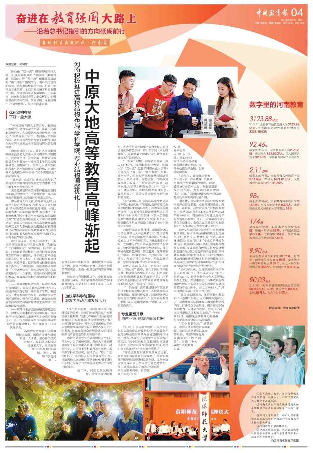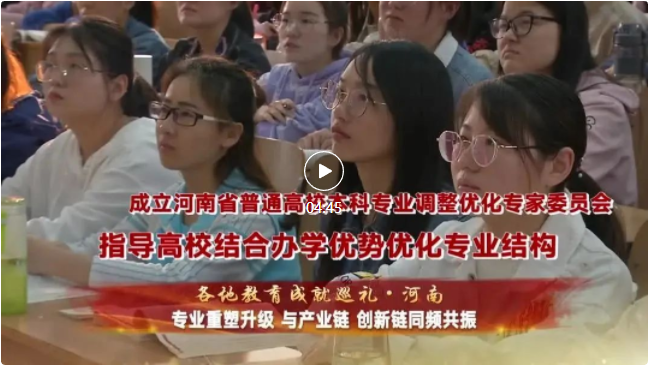 今天,“奋进在教育强国大路上——沿着总书记指引的方向砥砺前行”专栏之“各地教育成就巡礼”系列,通过一个视频、一组大图、一篇报道介绍河南如何积极推进高校结构布局、学科学院、专业结构调整优化——
