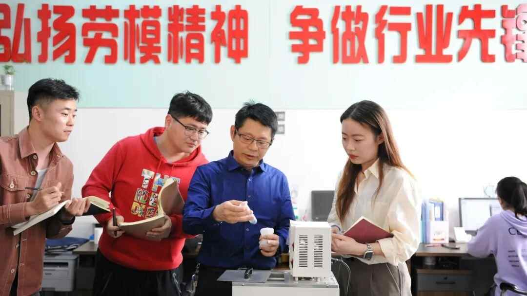 在河南理工大学,河南省科教文卫系统劳模(科技人才)创新工作室带头人魏建平在做实验。