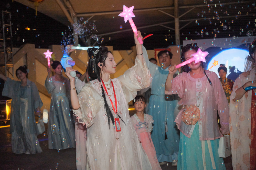 今年七夕期间,作为“广州乞巧·七夕节非遗活动周”四大主会场之一,珠江公园以碧波荡漾之姿、绿意盎然之韵烘托天河区“民俗金字招牌”,与区内多个文商旅单位跨界合作,在园内设月亮湖打卡、国风市集、汉服巡游、音乐派对、乞巧竞赛等嘉年华活动,承接起传统佳节对浩瀚星空的浪漫想象,也营造了一个深度感受文化、体验自然、共享资源的社群文化氛围。