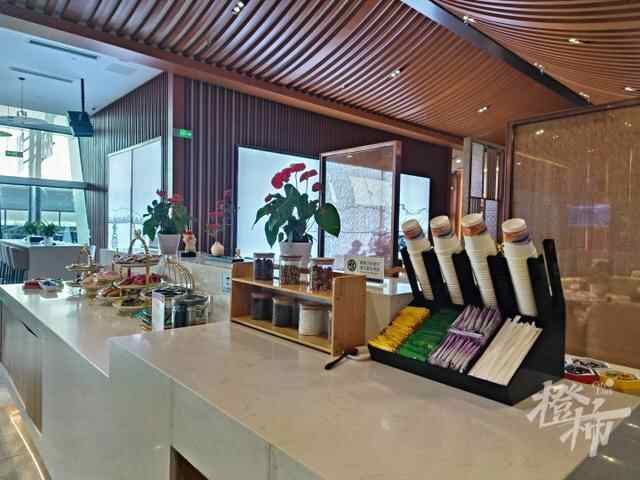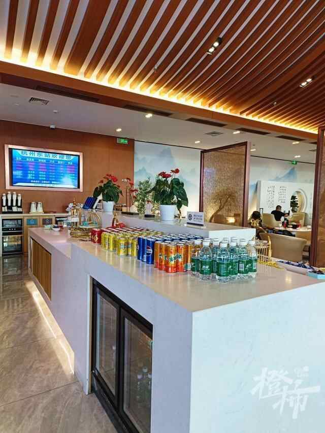 记者注意到,周围大概一半的乘客会取用一两样零食及饮品,一半的只是取用了饮品。记者取了一瓶矿泉水、一杯菊花茶及一袋三色豆。商务候车厅客人流转也很快,十多分钟后,大约一半客人离开。