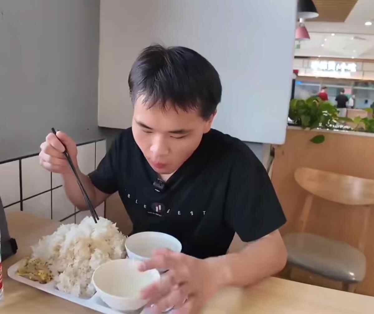 19岁的小伙子,在电子厂打暑假工吃饭时,菜只打1元钱的豆芽,米饭则是打了满满一座“小山”,他吃得一粒不剩。