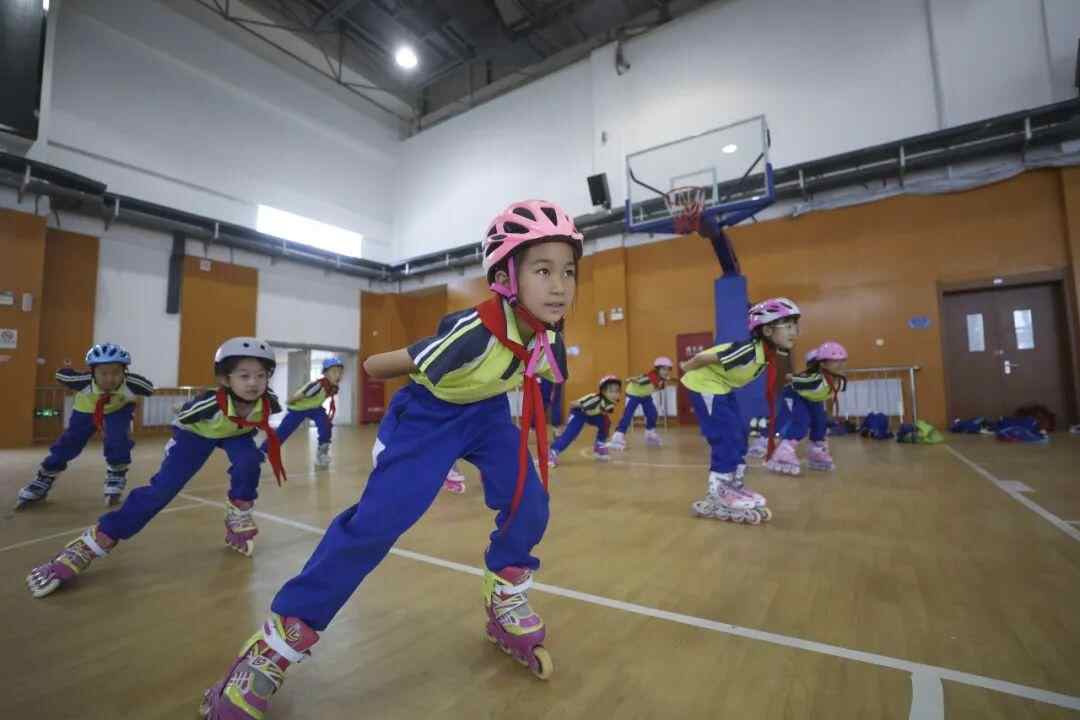 吉林省长春市绿园区同心小学学生在学校“活力操场”上骑独轮车。