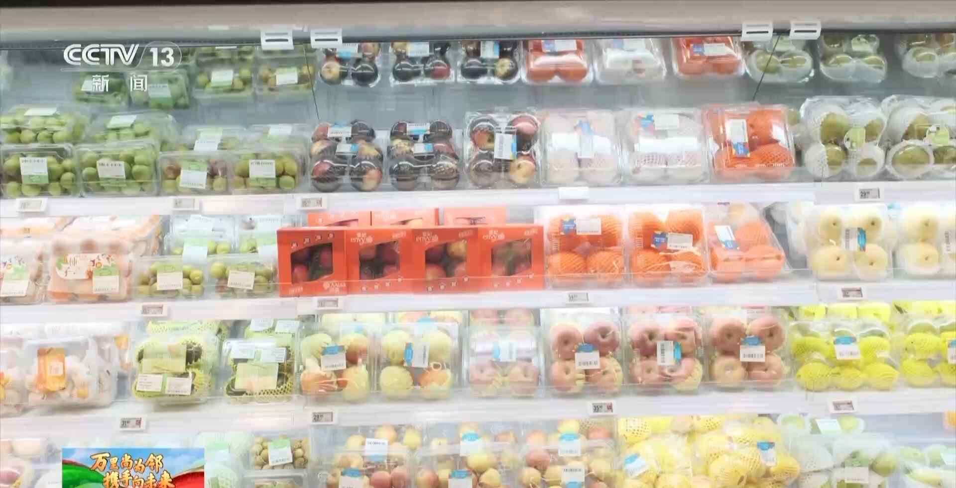 在上海一家生鲜超市里,来自南非的水果依次排开。
