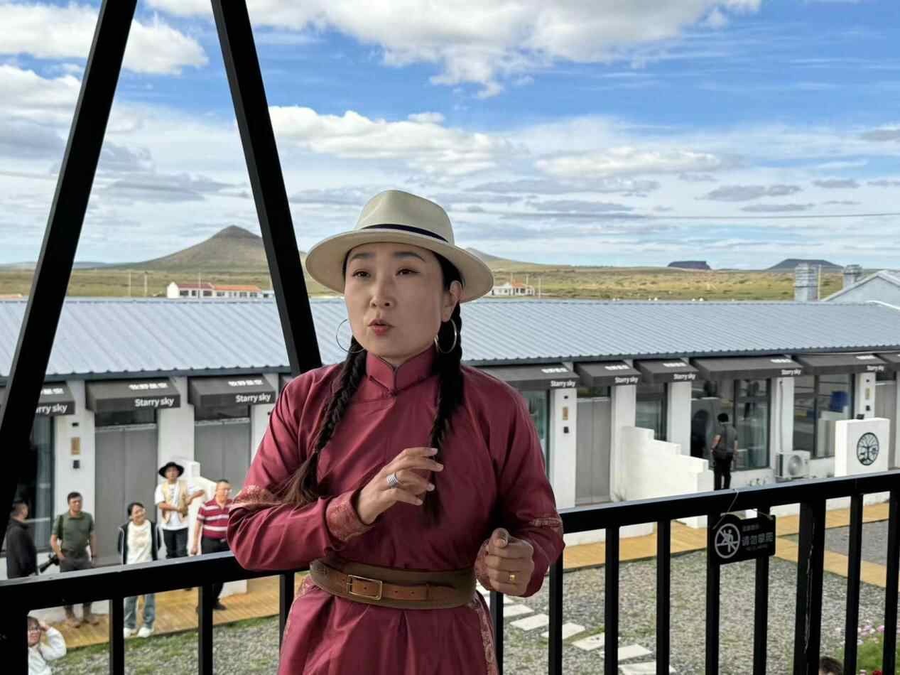 央视网消息 (记者 李文学)蓝天白云下,低调的乌兰哈达火山,静静地注视着山下的塔娜姑娘,与9月5日前来的“石榴花开·籽籽同心”网络主题活动采访团一起,听她讲述返乡创业的故事。