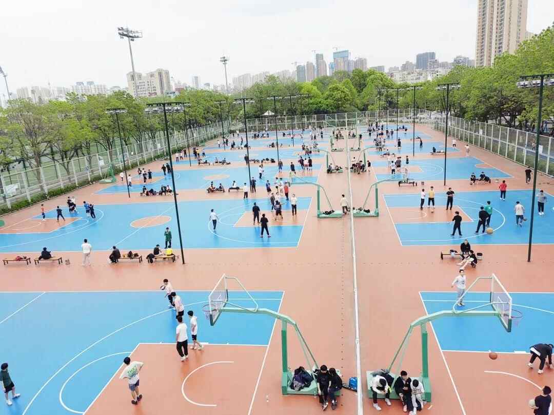 市民在武汉全民健身中心篮球场打球。武汉全民健身中心供图