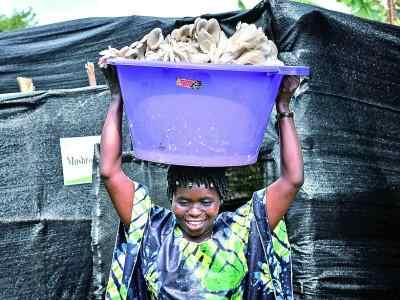 卢旺达南方省胡耶区,采用中国菌草技术栽培的鲜菇喜获丰收。新华社发
