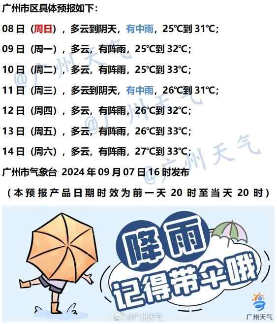 广州的雨也还没有消停的意思,未来一周继续有雨,记得带伞,露天晾晒又要等一段时间了。