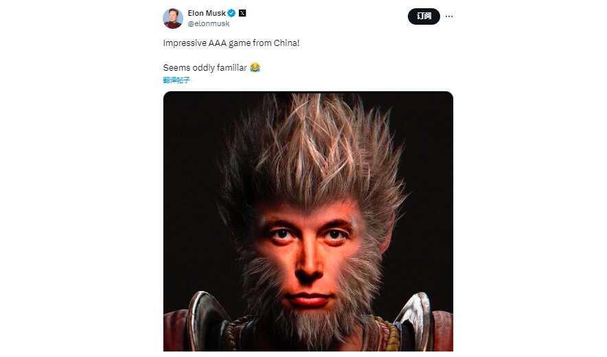 马斯克将自己的脸合成到《黑神话:悟空》上