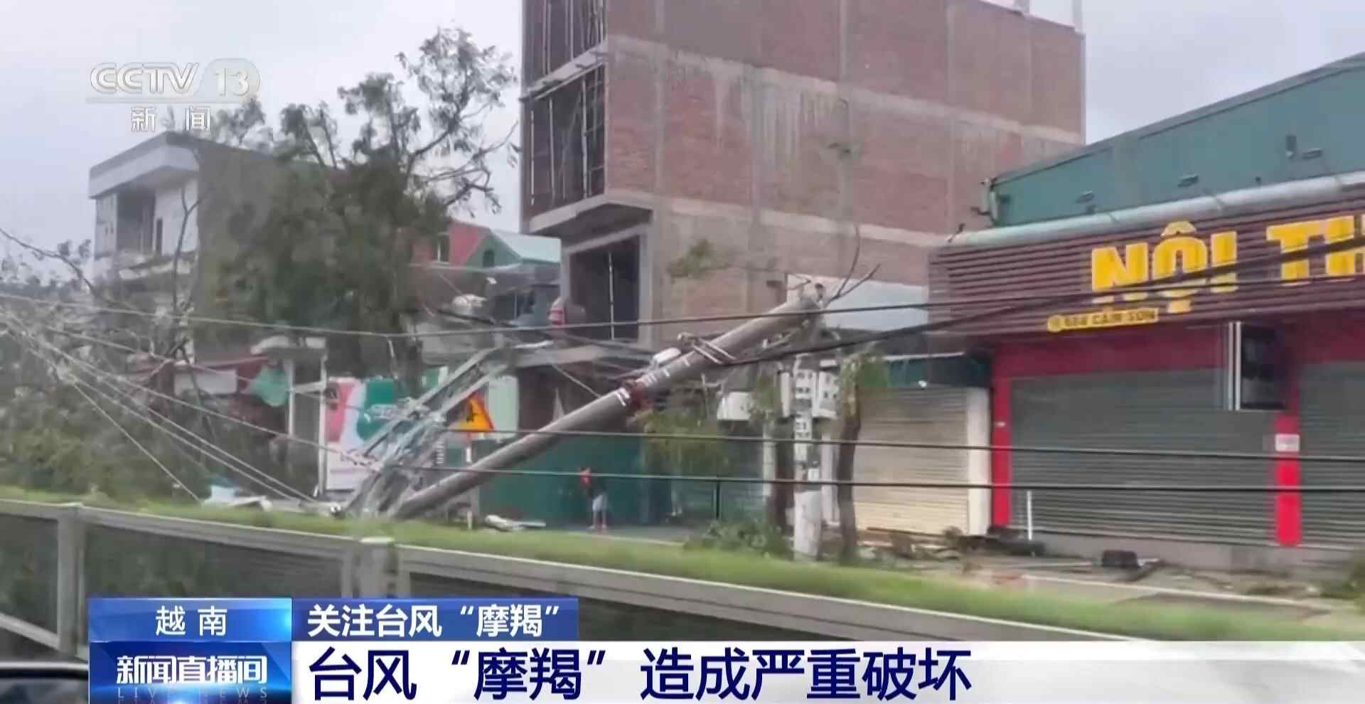 央视记者 王悦舟:当地时间9月7日,台风“摩羯”在越南北部的广宁省至海防市一带登陆,台风登陆时的巨大风力造成大量破坏,很多电力设施和网络通信设施都遭到破坏,造成大面积断电和断网。