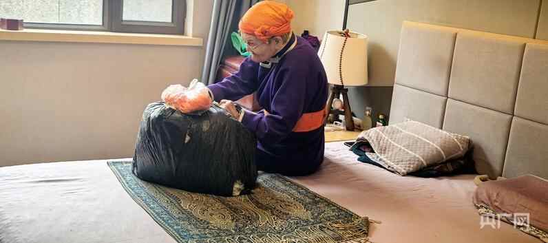 都贵玛额吉收拾冬天要穿的棉袍(央广网见习记者 邵玉琴 摄)
