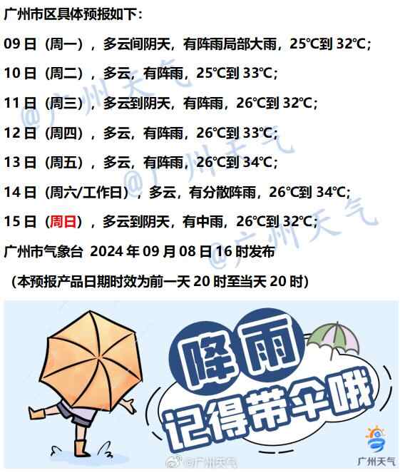 广州天气预报如下: