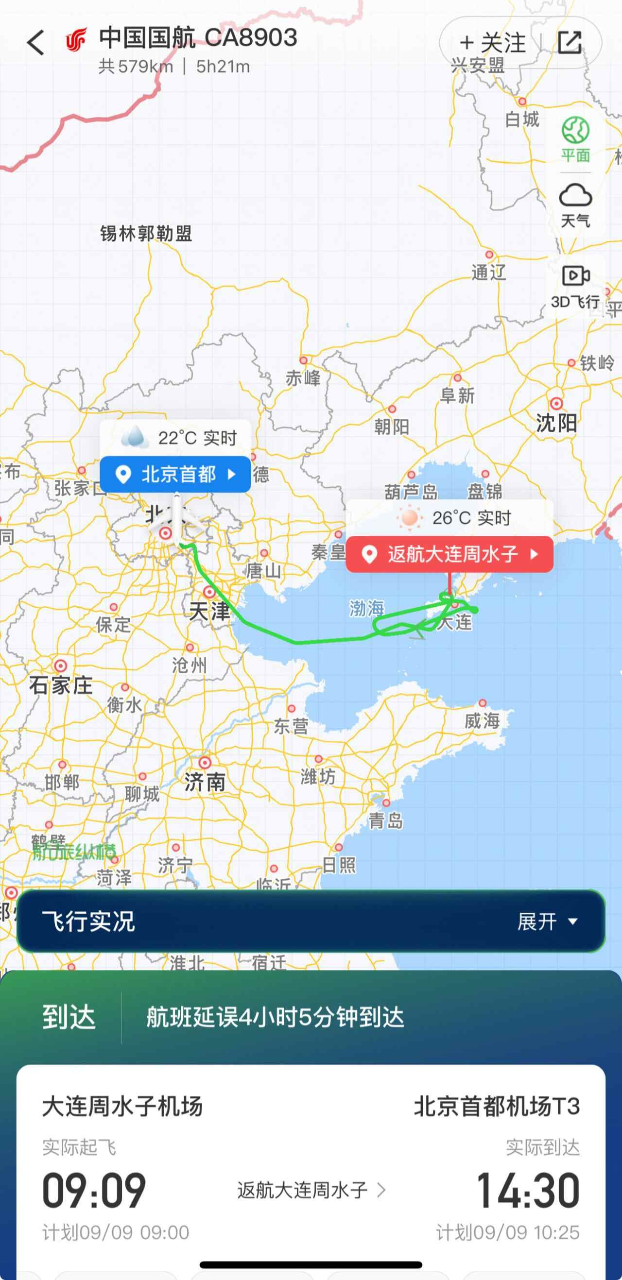 9月9日,由大连航空执飞的大连—北京CA8903航班,在飞行过程中左侧发动机故障,机组按程序处置,航班安全返航大连机场。大连航空已调配其他飞机执行此航班,并为有需求的旅客提供航班签转服务。
