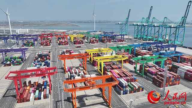 天津港北疆港区C段智能化集装箱码头(航拍图)。人民网 杨僧宇摄