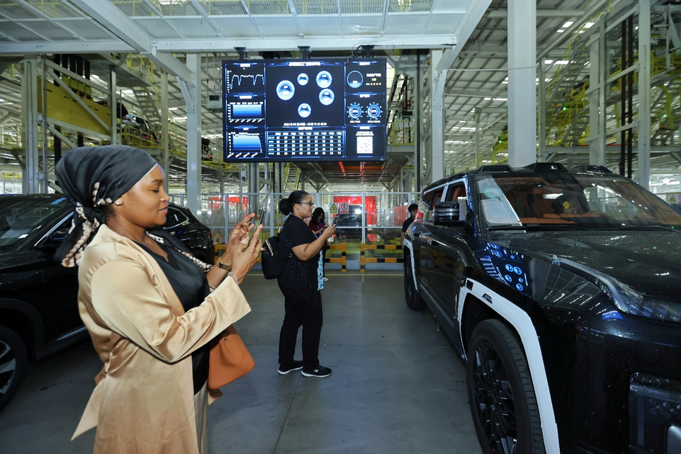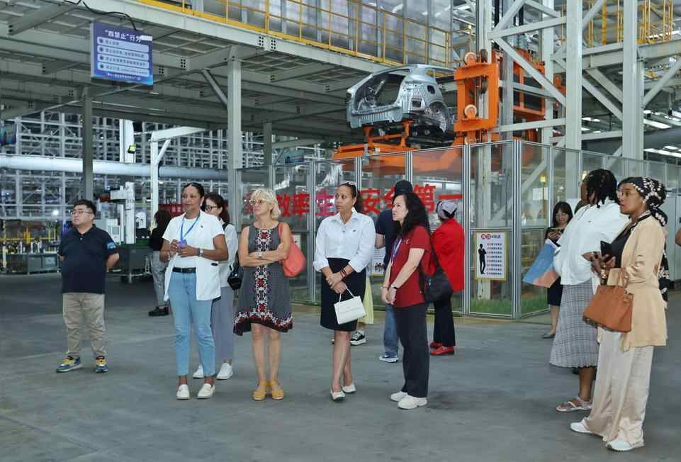 9月9日,来自密克罗尼西亚、毛里求斯、塔吉克斯坦、科摩罗、莱索托、佛得角、瓦努阿图、北马其顿、拉脱维亚等国家驻华大使夫人走进比亚迪西安基地,感受西安新能源汽车产业的澎湃动能。