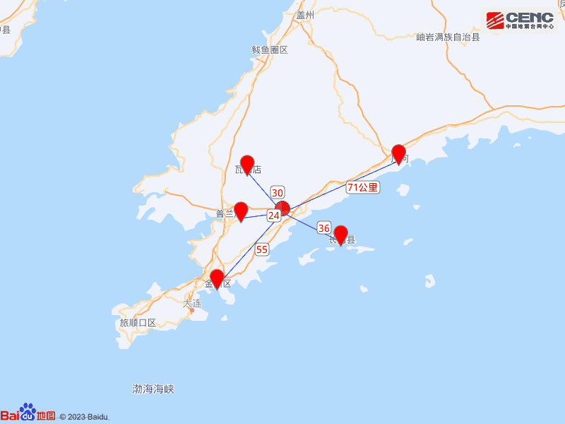 周边县城:震中距普兰店区24公里、距瓦房店市30公里、距长海县36公里、距金州区55公里、距庄河市71公里,距大连市76公里,距沈阳市288公里。