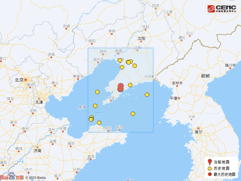 历史地震:根据中国地震台网速报目录,震中周边200公里内近5年来发生3级以上地震共21次,最大地震是2023年8月23日在辽宁大连市普兰店区发生的4.6级地震(距离本次震中1公里),历史地震分布如图。