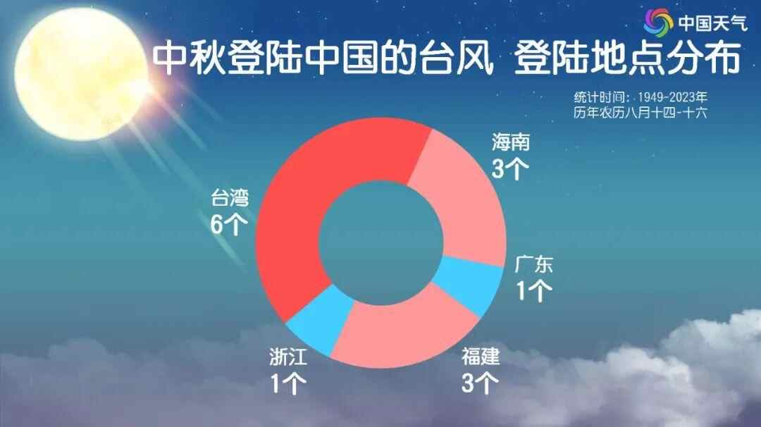 回顾中秋节影响我国的台风,2016年中秋节登陆厦门的“莫兰蒂”令人印象深刻 。当时,“莫兰蒂”中心附近最大风力达到15级(48米/秒),登陆后带着狂风大雨一路北上,波及福建、广东、江西、浙江、上海、江苏等11个省市。