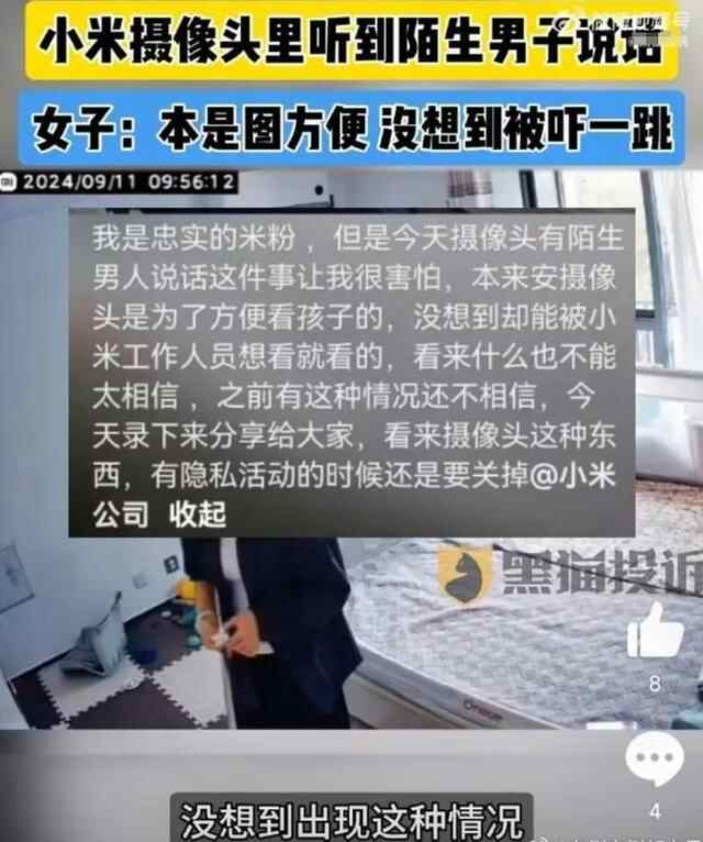 近日,一女子分享自家卧室的监控视频,称突然听到了陌生男子说话。女子表示,本来安装摄像头是为了方便照看孩子,没想到出现这种情况,觉得很害怕,看来也不能太相信摄像头。