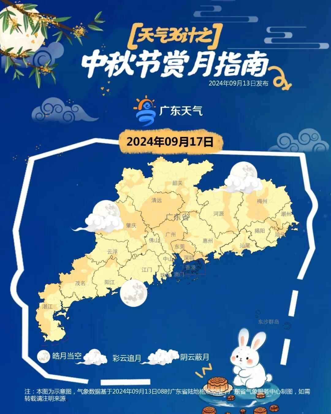 @广东天气 预计,中秋假期(9月15日-17日)广东多云为主,间中有雷雨,局部雨势大,需注意局地雷雨对出行的影响。另外,中秋节当晚大家还是能一睹圆月真容,大部分市县可见月光。