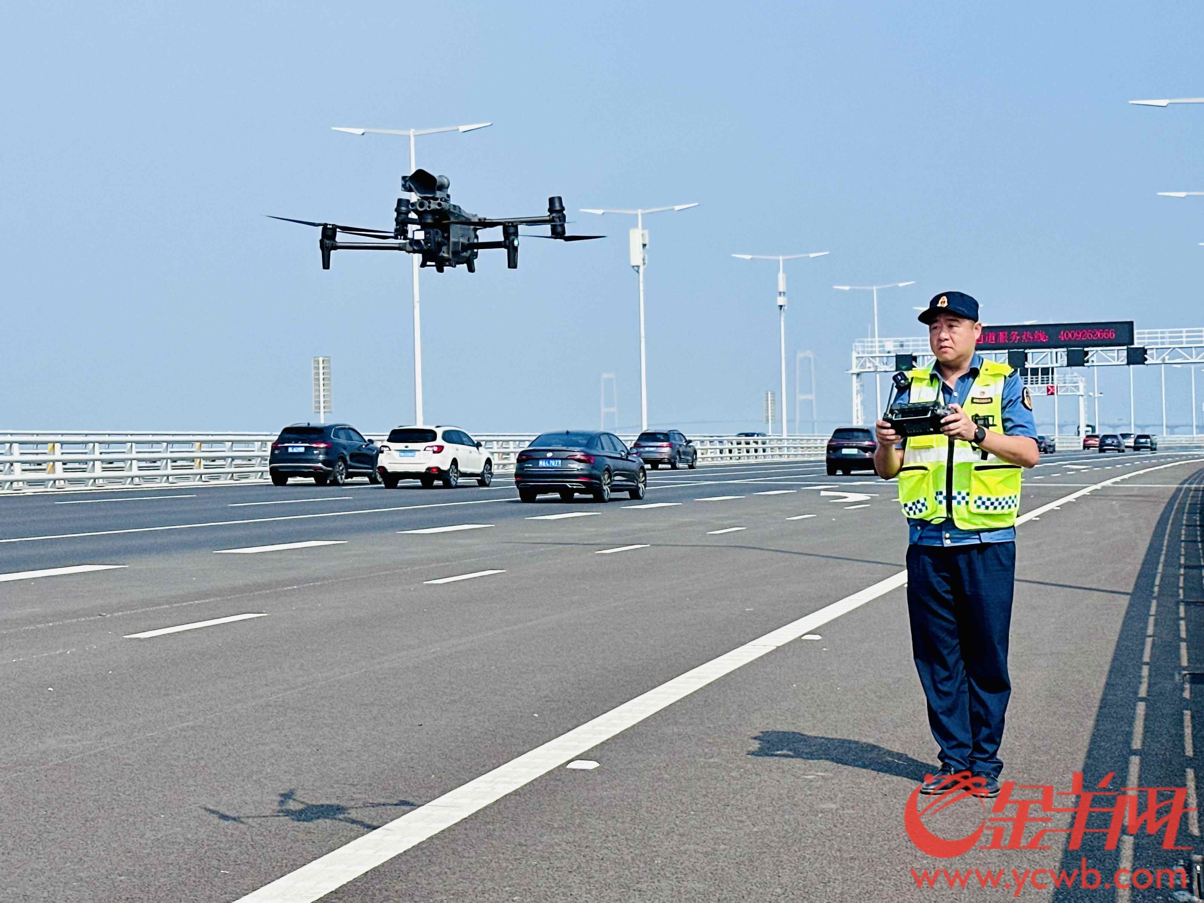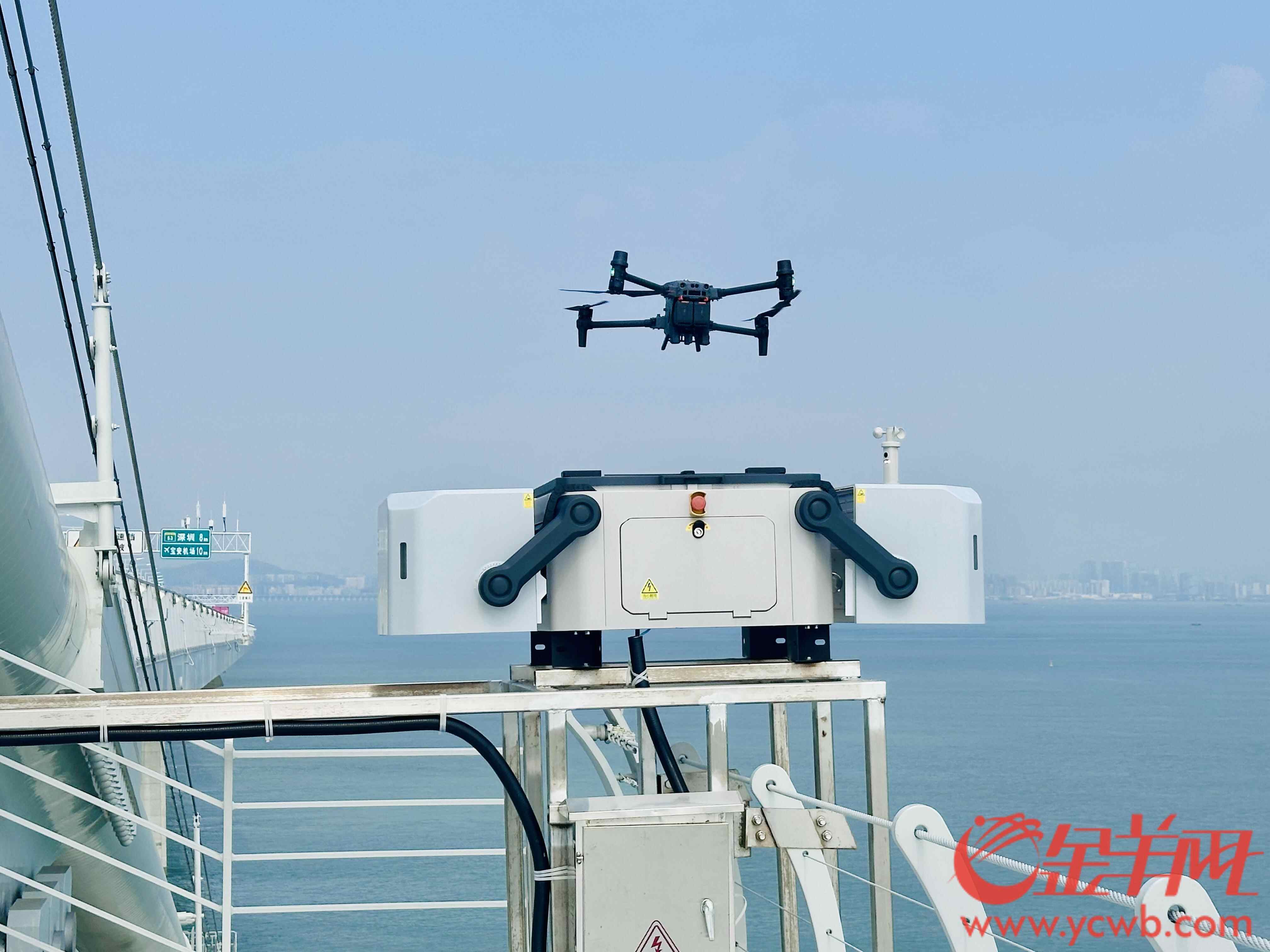 在深中大桥上,自动巡查无人机已经投入到空中“执勤”工作中。“我们主要在大车流时段利用无人机辅助巡查,快速定位、提高发现问题及应急响应效率,并通过无人机搭载喊话器对现场进行指引。”李会强介绍,“深中通道全线布有4套无人机自动起降巡航装备,可实现深中大桥、中山大桥、翠亨东互通等空中自动化巡查,画面会实时回传到深中通道路网调度中心。”