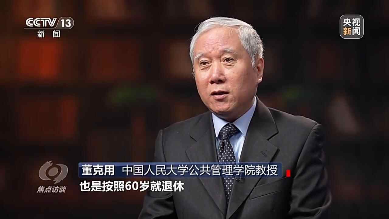 中国人民大学公共管理学院教授 董克用:医生往往都要医学博士,30岁才工作,也是按照60岁就退休,对他来说是一种浪费,他也愿意多工作。因此劳动者多样化的需求,也是这次推进延迟退休政策改革的一个原因。