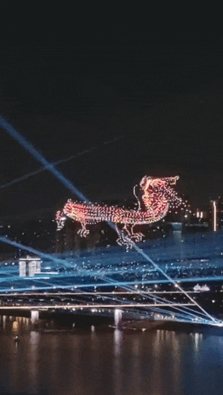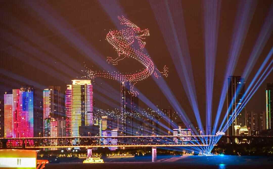在长江江面上的这一场酣畅淋漓的光影大秀,出现在全球观众眼前,让大家大饱眼福。多图预警!