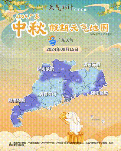 先来看广东中秋假期这三天天气的最新预报。@广东天气 预计,15日,广东多雷雨天气,局部雨势强烈,伴有7~9级雷雨大风;16-17日,广东多云为主,中南部市县有分散(雷)阵雨,中北部的部分市县有35~36℃的高温天气。