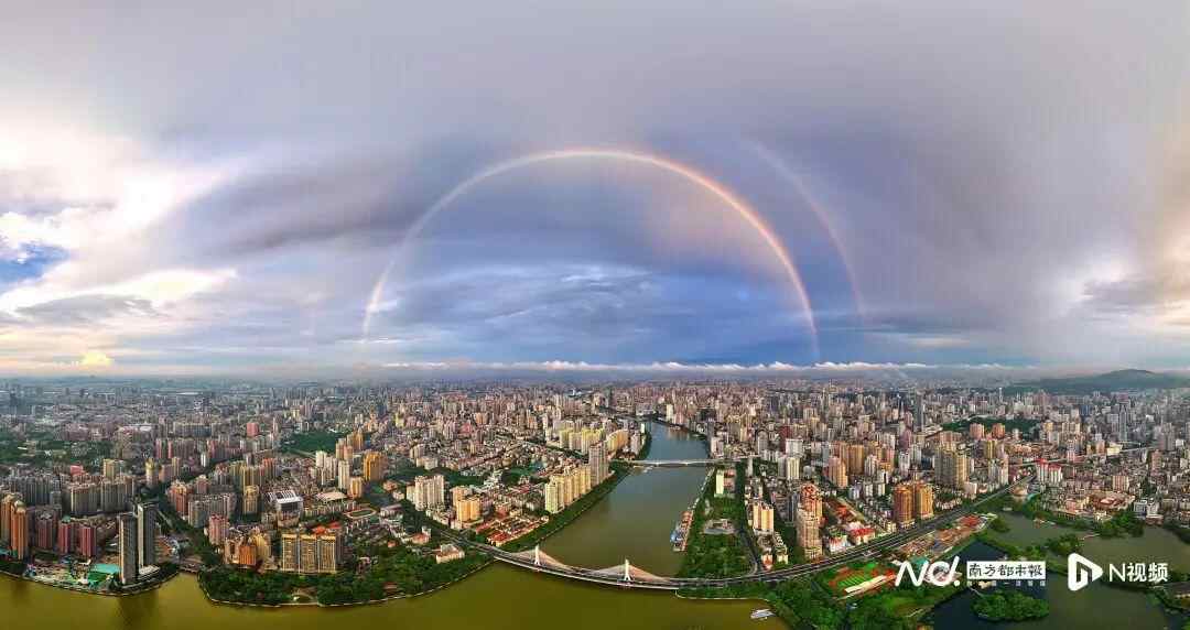9月15日,中秋假期第一天,珠江上空出现双彩虹。图/南方都市报