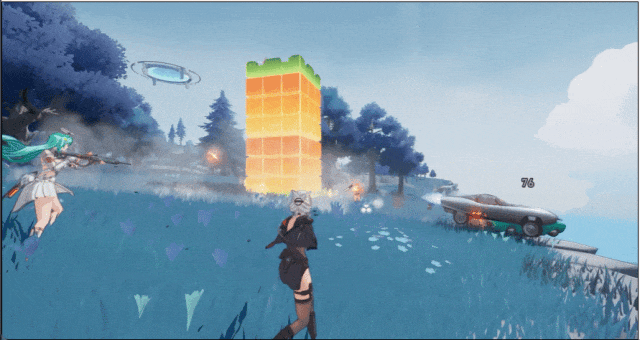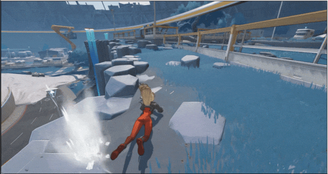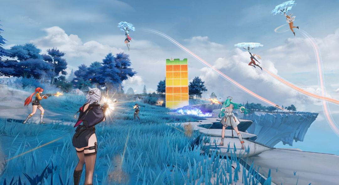 其二是立体的战斗。这一方面来源于地形落差,官方透露有传送门、滑翔伞、浮空汽车、岛屿上升气流等可以用于高低点位转移的设计;另一方面来源于前面说到的英雄技能,单预告片中我们就能看到至少有两个英雄能原地冲上高点。