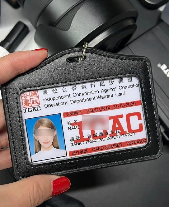 本月初,有网友发现一名博主佩戴疑似香港廉政公署工作人员的证件在香港廉政公署门前拍照,该博主在自己的平台账号上发布了照片,同时还发布了所佩戴证件的特写。该证件与香港廉政公署正式工作人员的证件高度相似,其上面除了写着该网友的名字外,还标注有职位为“首席调查主任”。而该博主此前在平台上有近5万粉丝。