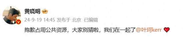 9月19日,黄晓明官宣新恋情:“大家别猜了,我们在一起了。”
