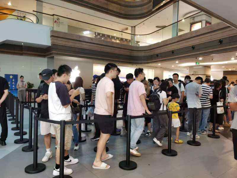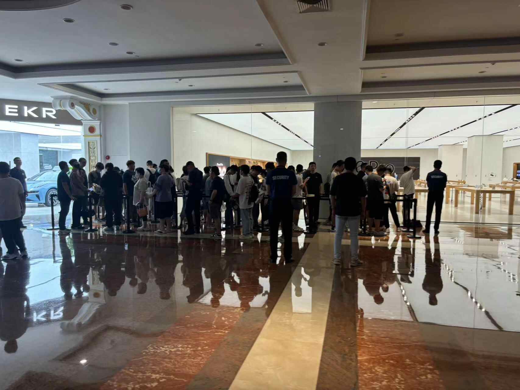 在苹果环球港门店,大批预约的用户同样在门店门口等待领取新机。多名消费者表示,今年苹果新机更新力度不算大,包括AI功能也不能第一时间用上,原本期待值没那么高,但因为使用习惯,还是会选择苹果。
