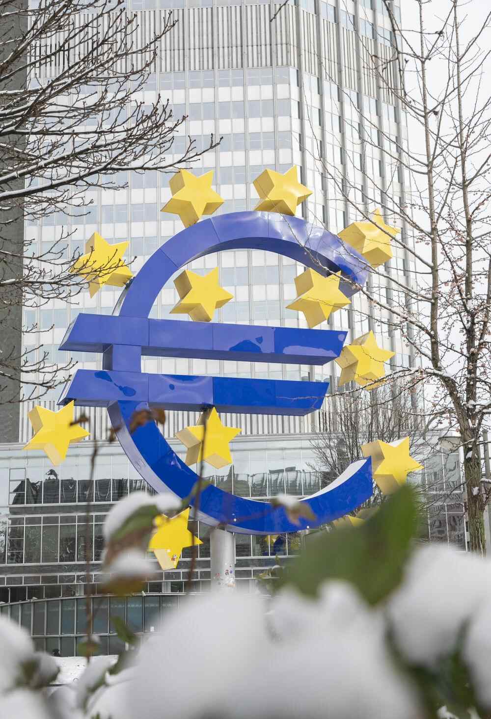 这是1月18日在德国法兰克福拍摄的欧元标识。新华社记者张帆摄