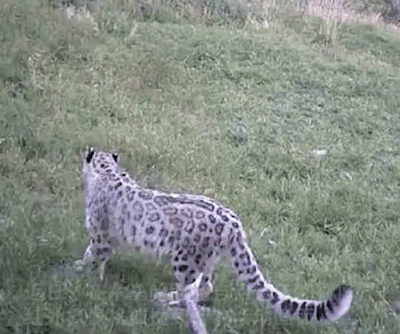 视频中一只身材健硕的雪豹在镜头前慢慢走过,警惕地望来望去。这是第一次在木垒天然林区捕捉到雪豹活动画面。