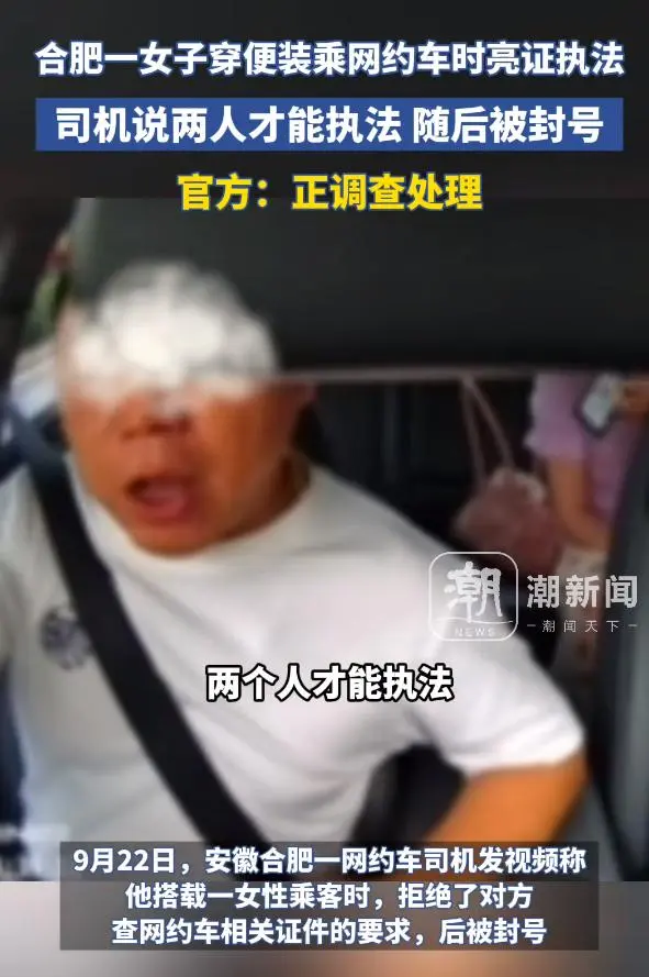 9月22日,安徽省合肥市一名网约车司机在社交平台发布视频称,他搭载一名女性乘客时,拒绝了对方查网约车相关证件的要求,后被封号。