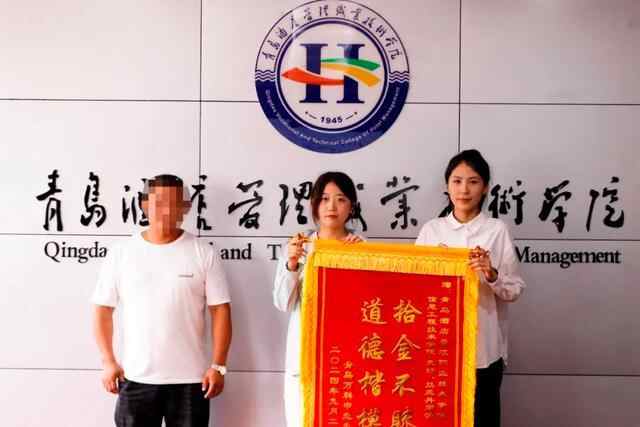 收到遗失物品的申先生对两位大学生的行为充满了感激与敬意,他特意定制了一面绣着“拾金不昧、道德楷模”八个大字的锦旗,在老师的见证下亲手赠予了两位同学。据了解,王舒和马玉丹是青岛酒店管理职业技术学院的两位大二学生,分别来自菏泽和烟台。两人平日里在学校品学兼优,王舒还多次获得校奖学金。