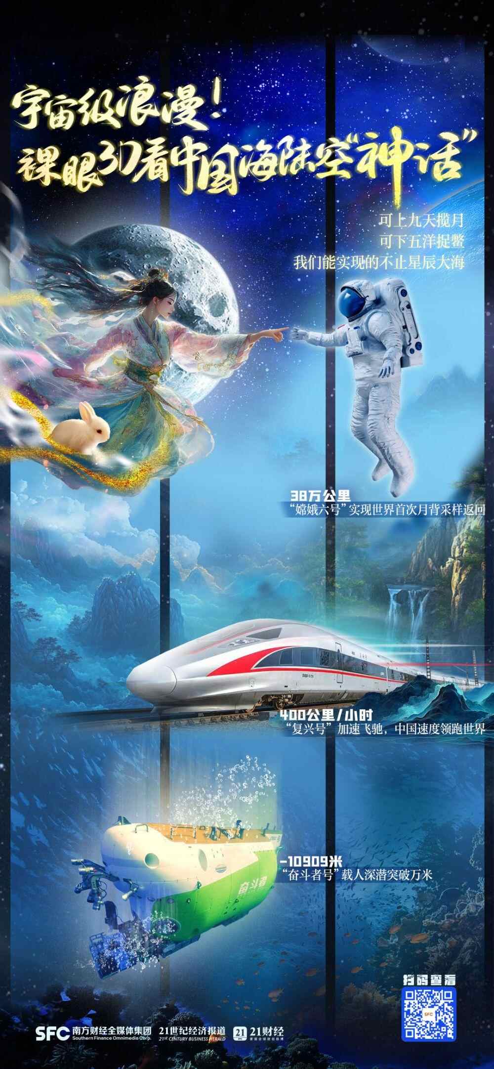 为庆祝新中国75周年华诞,南方财经全媒体集团 21财经客户端重磅推出3D视频《宇宙级浪漫!裸眼3D看中国海陆空“神话”》,生动展现新中国成立75年来在“海陆空”领域的瞩目成就。