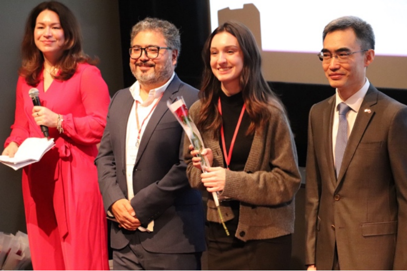 △包莎丽在“汉语桥”比赛中获奖(左一)