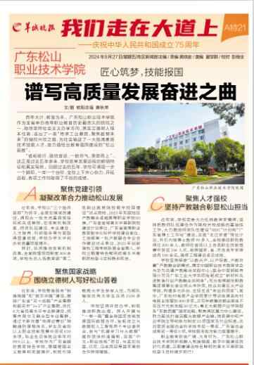 百年大计,教育为本。广东松山职业技术学院作为全省举办高等职业教育历史最悠久的院校之一,始终坚持社会主义办学方向,落实立德树人根本任务,走出了一条“传承工业基因,聚焦数智未来”的强校兴校之路,为社会输送了一大批高素质技术技能人才,奋力描绘出教育强国建设的“松山画卷”。
