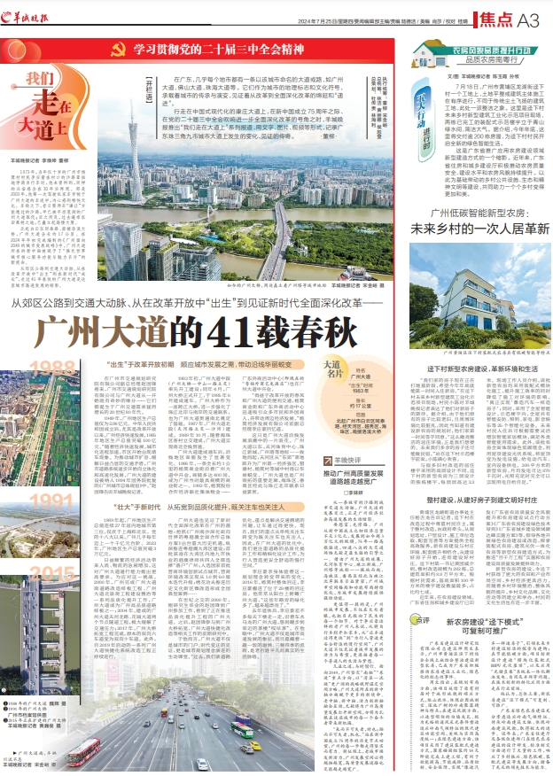 行走在中国式现代化的康庄大道上,在新中国成立75周年之际、在党的二十届三中全会吹响进一步全面深化改革的号角之时,羊城晚报·羊城派推出“我们走在大道上”系列报道,用文字、图片、视频等形式,记录广东珠三角九市城市大道上发生的变化、见证的传奇。