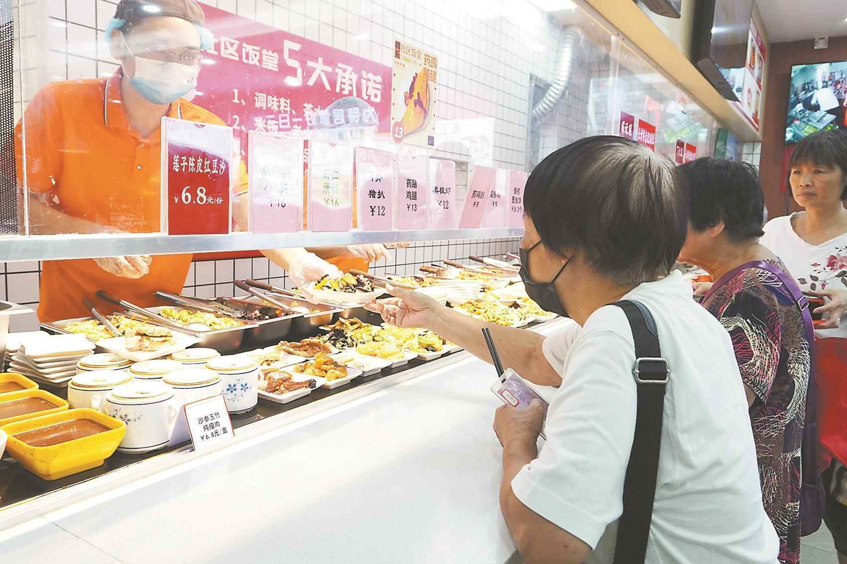 “我的‘五件套’午餐补贴3元后,只需要花11元。昨晚手速够快,又在群里抢到优惠红包,花1元,又能买到一碗红豆糖水,好味!”今年76岁的邓姨每天从芳村坐车到位于南源街道青年社区的桐乐社区饭堂吃午饭,一份肉饼、一份韭菜炒蛋、一份白灼生菜、一碗米饭、一碗例汤……邓姨吃得津津有味。