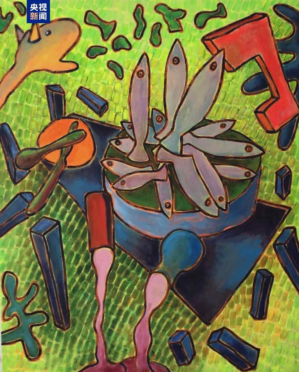 美国画家、罗德岛艺术学院教授杰瑞·米沙克为“云中锦书”带来了作品《中国盛宴》,灵感源于在中国朋友家做客时受到的热情款待。在米沙克的艺术语言中,桌子象征着稳定、交流和满足。画中的宴席充满动感和童趣,如音符般的绿色背景表达着画家身处盛宴时的感动和喜悦。