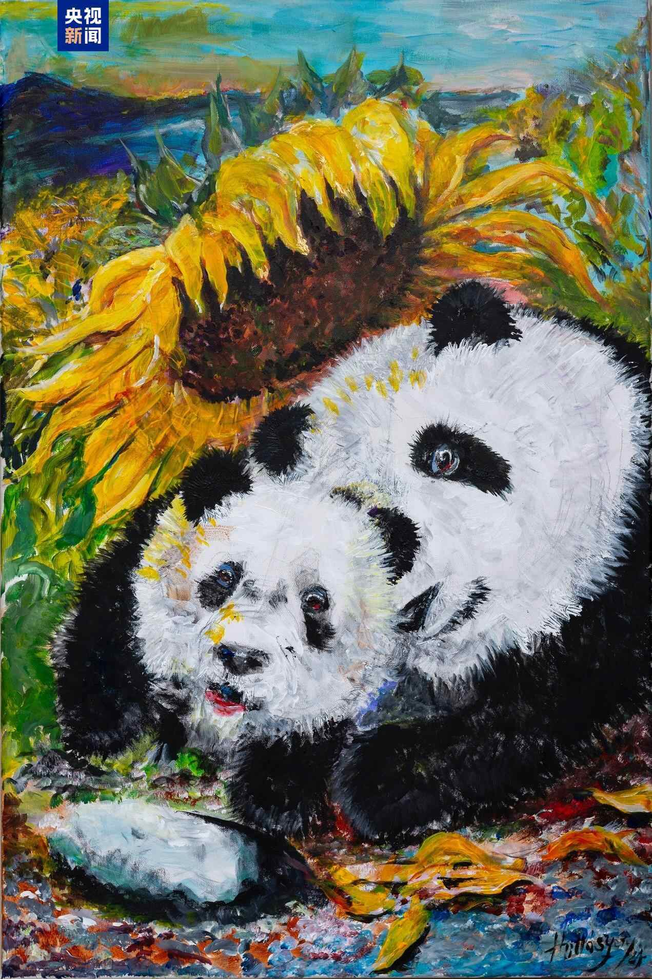 向日葵既是霍洛西的创作主题之一,也象征着加州的植被和自然景观,霍洛西把加州向日葵和中国大熊猫结合在一起,比喻旅美大熊猫受到美国人民的喜爱和呵护,在圣迭戈的新家茁壮成长。霍洛西认为,人与人交流的关键是保持开放的心态,在倾听的过程中学习与对话。