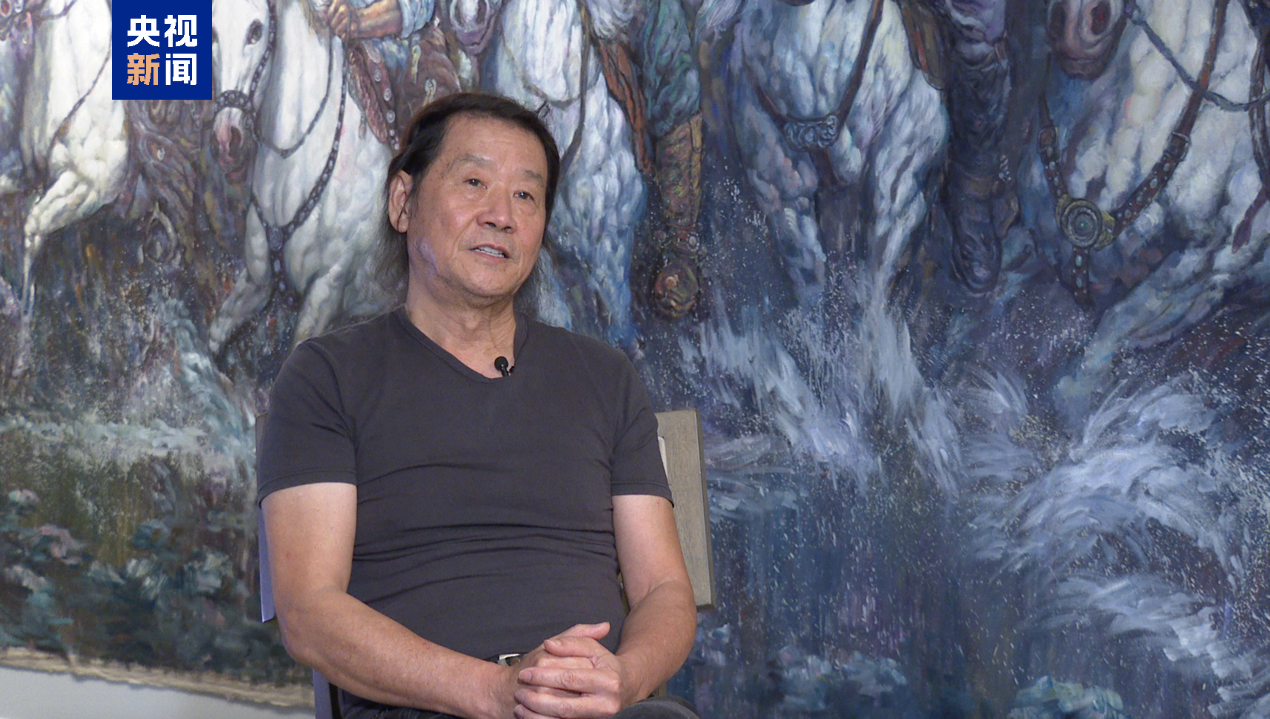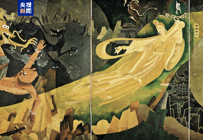 中国画家杨晓阳的作品《远古足音》描绘了嫦娥奔月,寄托了中华民族千年飞天梦,而中国航天事业的发展正将这一梦想化为现实,书写新的传奇。