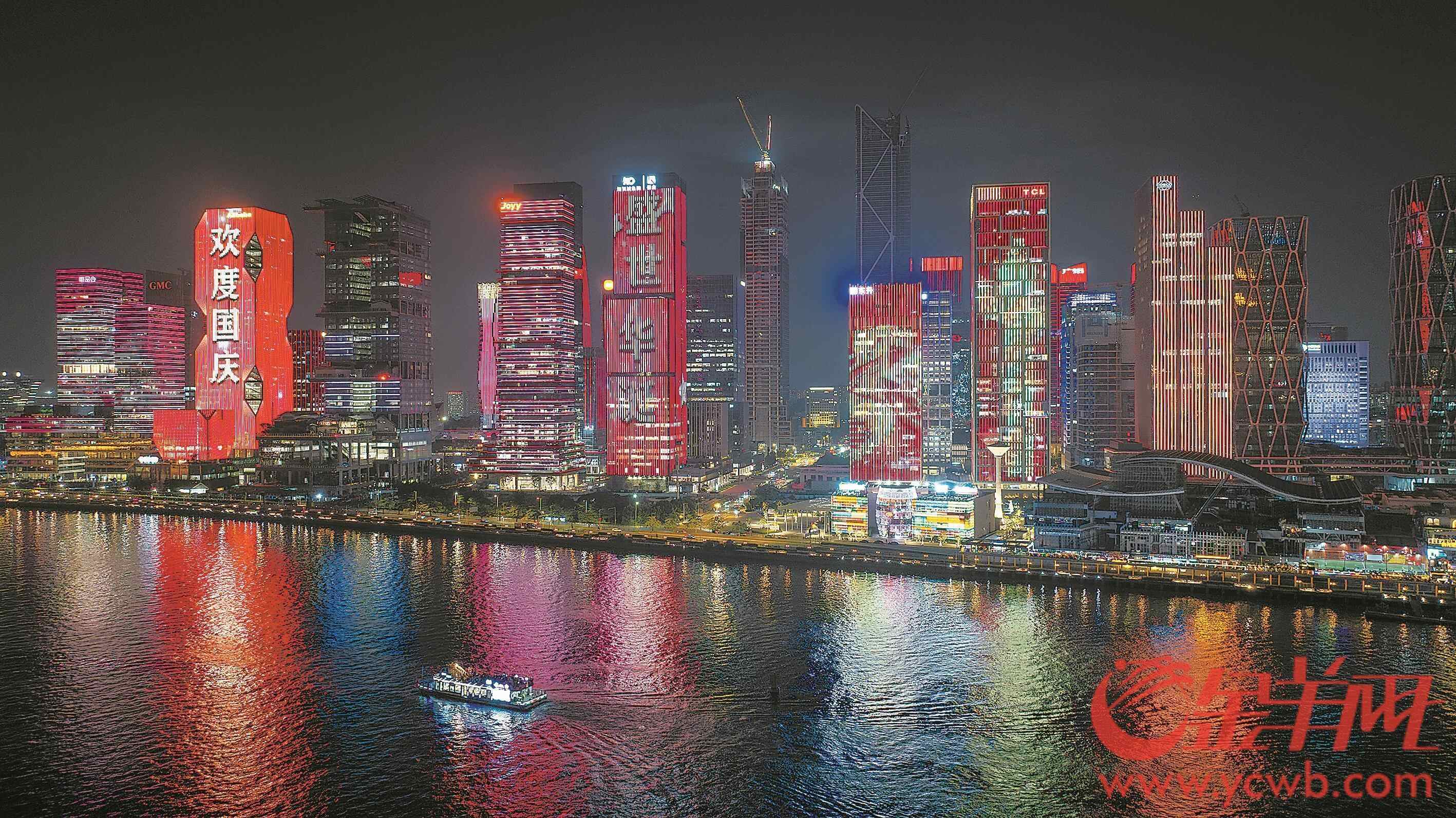 喜迎国庆,共庆华诞。27日晚,广州珠江沿江24栋楼宇、海珠广场、琶洲西区、猎德大桥、广州塔等主要城市地标媒体立面,循环播放“热烈庆祝中华人民共和国成立75周年”“欢度国庆 盛世华诞”“爱我中华”等字样,并动态展示五星红旗、长城、港珠澳大桥、广州塔等图案。这不仅扮靓城市、营造出喜庆祥和的国庆氛围,也点燃了市民的爱国热情,吸引众多市民驻足观看拍照。