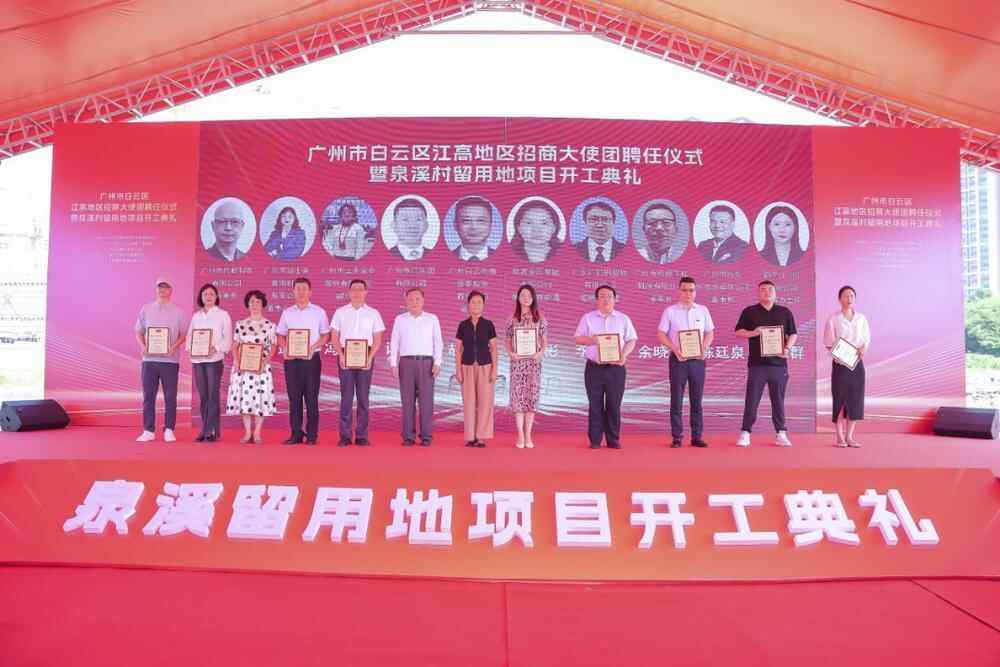 9月27日,广州市白云区江高地区招商大使团聘任仪式暨泉溪村留用地项目开工典礼举行。活动为51名招商大使颁发聘书,同时21个重点项目现场签约,并开展泉溪村留用地项目开工典礼,扎实推进高质量发展。