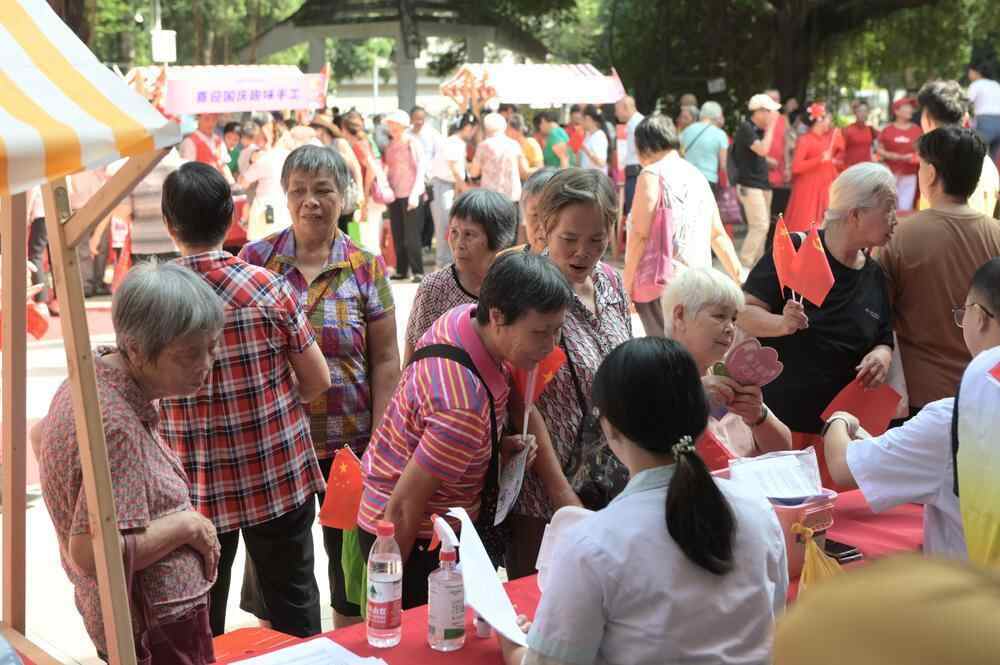 庙元社区义演队的精彩开场,拉开了活动的序幕。活动现场,为黄村献计策、“微心愿”征集、来穗专才志愿队暖心义诊服务、喜迎国庆趣味手工等八大服务摊位与三大红色主题汇演同步举行,吸引了超500名居民热情参与。