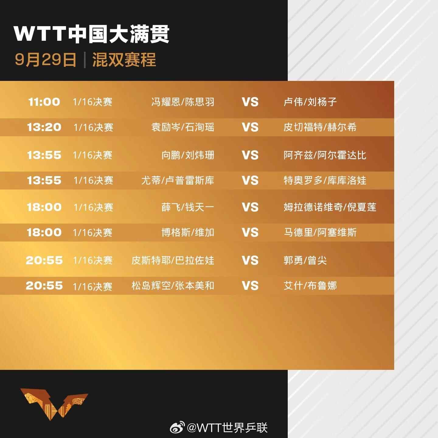 孙颖莎的首轮比赛将在今天11时进行,王楚钦将于今天19时10分出战。