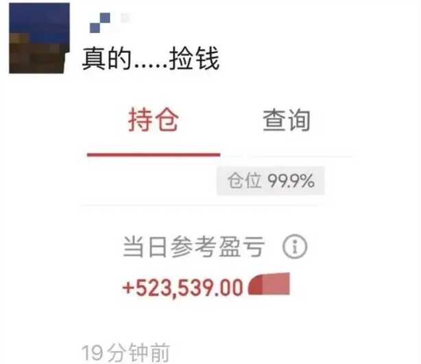 还有人一大早赚了超52万元,并激动地晒出朋友圈:“真的……捡钱!”